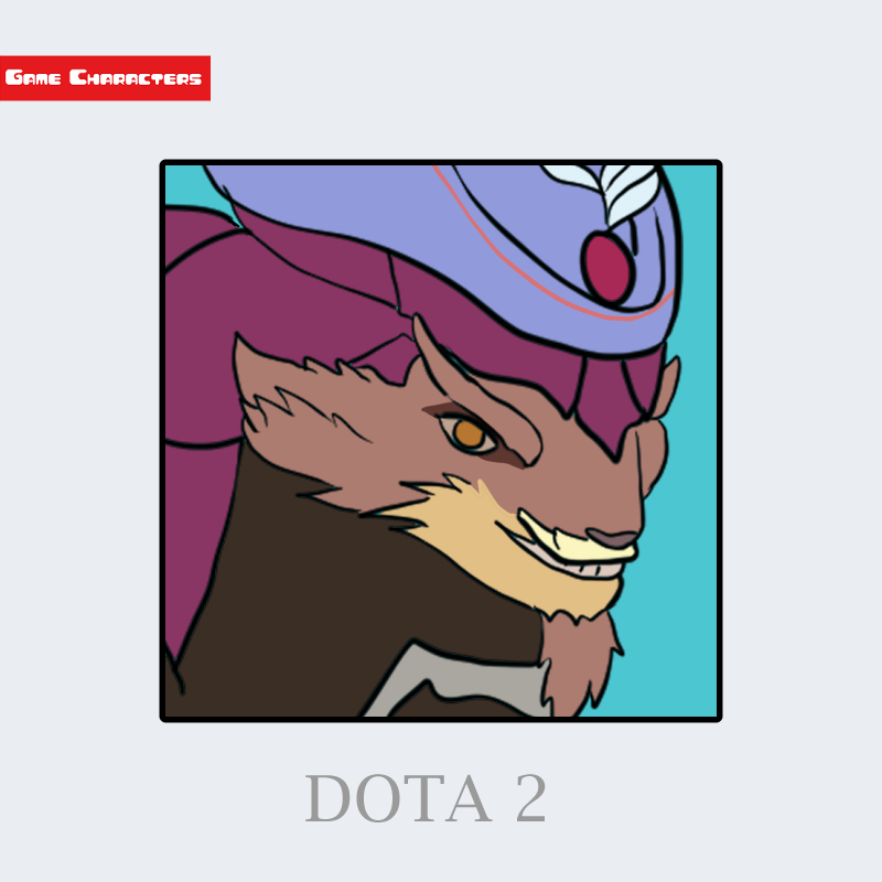 『Dota 2』に登場するパンゴリアーは、獣的要素を持つ人型キャラクターである。顔面は動物的な口吻を持ち、下顎に鋭い歯列が確認できる。体表は茶色系の毛皮で覆われており、首元から胸部にかけて厚みのある毛束構造が形成されている。頭部には紫色の帽子状装飾が装着され、金属パーツや布素材が組み合わされた衣装構造が特徴。「獣人騎士型構造」に分類され、同作内では人型装甲キャラクターとの中間的存在としてデザインされている。