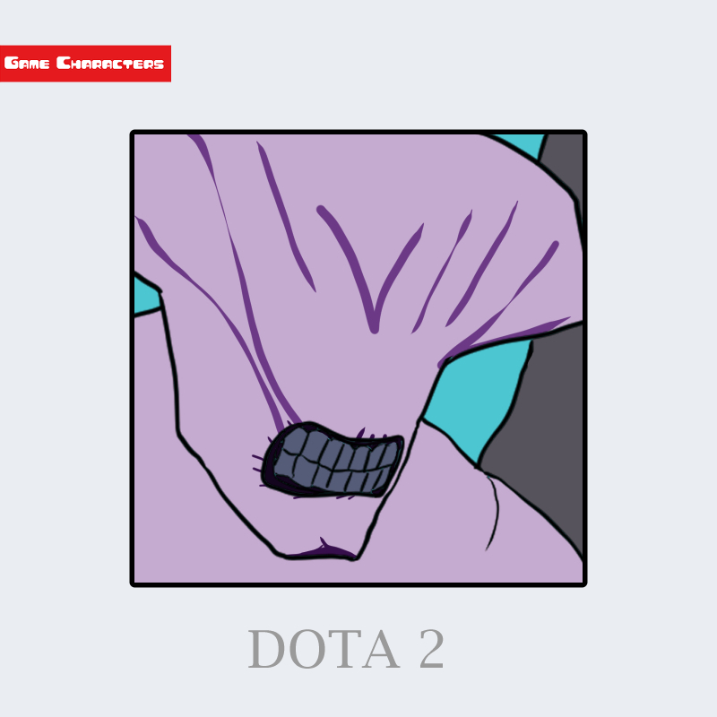 『Dota 2』に登場するフェイスレスボイドは、人型に近い体格を持ちながらも明確な顔面構造を欠く異形体キャラクターである。頭部は滑らかな曲線を描く紫色の外皮で覆われ、口部のみが横一線に開口している。顎や頬の区分が存在せず、筋肉的要素よりも生体外殻的な滑面が強調されている。全体として「非人型外皮構造」に分類され、同作内の獣人系や装甲型キャラクターと比べて、時間や存在概念を象徴する抽象的形態が特徴。