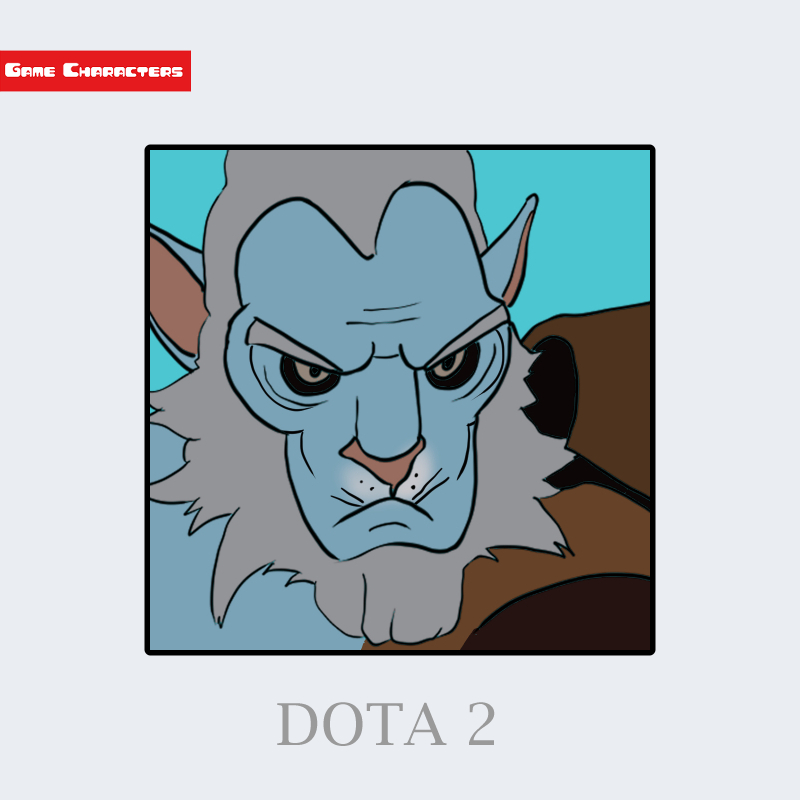 『Dota 2』に登場するファントムランサーは、獣的特徴を備えた人型のキャラクターである。青みを帯びた皮膚と鋭い耳を持ち、顔の輪郭はやや獣化した構造を示す。鼻梁は短く、下顎には白い毛髭が確認できる。肩には厚みのある装備が装着されており、上半身は筋肉的構造を基調としている。「獣人戦士型構造」に分類され、同作に登場する人間系キャラクターと比べて動物的形態を強く保持している。