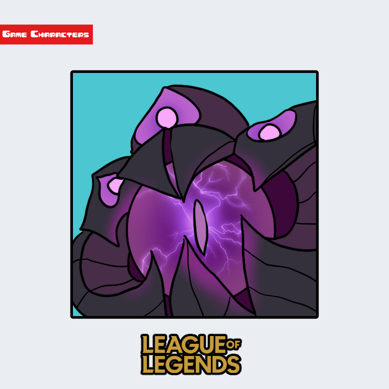 『リーグ・オブ・レジェンド』に登場するヴェル=コズは、無機的な外殻と発光する中心眼を持つ異形体であり、「虚空機構型構造」に分類される。身体は節構造を持つ触手状の形態で構成され、中央部には光を放つ単眼が配置されている。外殻は金属的質感を帯び、紫色のエネルギーが内部から流動しているように見える。頭部にあたる部分は複数の装甲板が層状に重なり、全体的に生物と機械が融合した幾何学的な設計となっている。