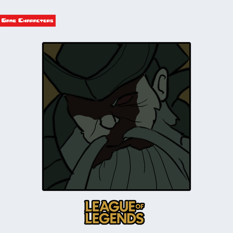 『リーグ・オブ・レジェンド』に登場するガングプランクは、人間型のキャラクターで、厚い胸板と筋肉質な体格を持つ。髭を蓄えた顔に黒い海賊帽をかぶり、上半身は金属装飾を施した革製の鎧で覆われている。肩や腕には大ぶりの防具が装着され、腰には弾帯や道具袋が確認できる。片手には大型の火器を構え、全体的に海賊をモチーフとした重装構造を持つ。「海戦重装型人間構造」に分類される。