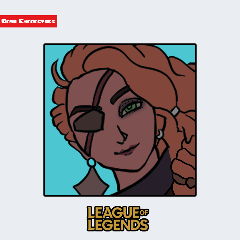『リーグ・オブ・レジェンド』に登場するサミーラは、人間型のキャラクターで、黒髪を片側に編み込んだ長髪が特徴的である。右目には眼帯を装着し、上半身は赤と黒を基調とした軽装戦闘服で構成されている。肩から腰にかけて金属装飾が組み込まれ、機動性を保ちながらも防御性を意識した設計となっている。腕部や太腿には武器ホルダーやベルトが備えられ、全体として機能性の高い「戦闘装飾型人間構造」に分類される。