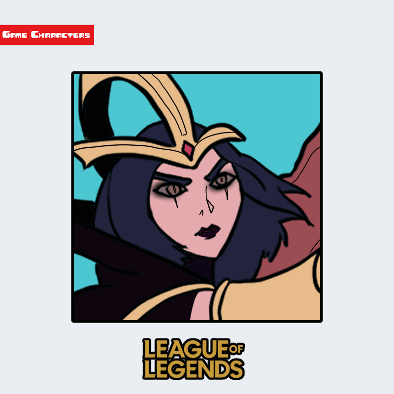 『League of Legends』に登場するルブランは、黒と金を基調とした衣装をまとう人型キャラクターである。長い黒髪に赤紫のグラデーションを帯び、頭部には黄金の冠状装飾が施されている。胸元や肩のデザインは鋭角的で、布地と金属装甲が融合した構成を持つ。背面には羽状の装飾が展開し、衣装全体が左右対称的な幾何構造を形成している。「儀礼装束型/魔導融合構造」に分類され、戦闘的要素よりも象徴的造形を強調したデザインとなっている。
