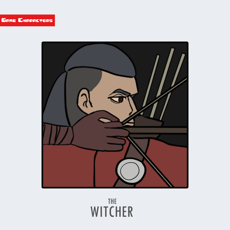 『ウィッチャー』シリーズに登場するホワイトレイラは、黒髪を後頭部で束ねた女性キャラクターである。顔の輪郭は鋭く、視線は前方へ強く固定されており、射撃姿勢をとる構図が確認できる。衣装は赤系の外套と革製の防具を組み合わせており、肩と腕にかけて動作性を確保する設計になっている。手には弓を構え、戦闘準備状態を示す構造的特徴を持つ。「戦闘射撃型/軽装防具構造」に分類され、同作の重装戦士系キャラと比較して機動性を重視した装いである。