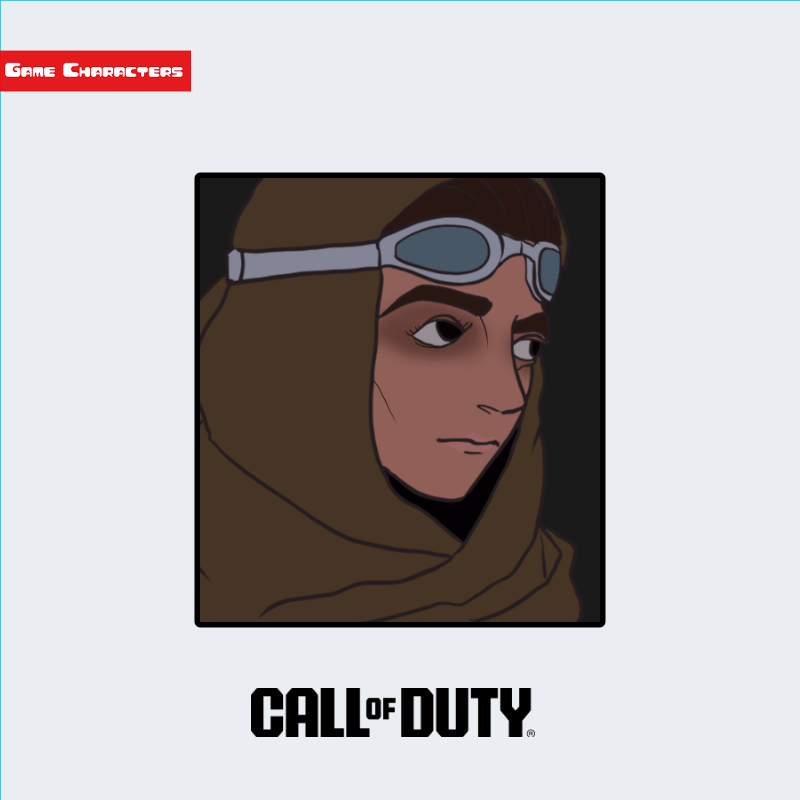 『コール オブ デューティ』シリーズに登場するファラ・カリムは、褐色系の外套とヘッドスカーフを着用した女性キャラクターである。視認情報では、頭部を布で覆い、額部にはゴーグルを装着している。「戦術布装備型」に分類され、砂漠地帯や乾燥環境での作戦行動を想定した衣装構造となっている。露出を抑えた機能的な装備構成が特徴で、他の兵士キャラクターと比較して環境適応性を重視したデザインである。