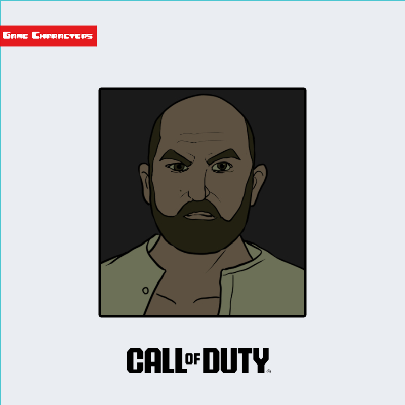 『コール オブ デューティ』シリーズに登場するセルゲイ・コジンは、剃髪に近い短髪と濃い顎髭を持つ人物型キャラクターである。視認情報では、淡緑色のシャツを着用し、上部のボタンを外した開襟型の衣装構成となっている。「民間服融合型」に分類され、戦闘服というよりも非公式行動や拘束解除後の場面などを想定した軽装構造が見られる。装飾性を排し、質実な布地構成によって全体に無骨な印象を与えるデザインである。