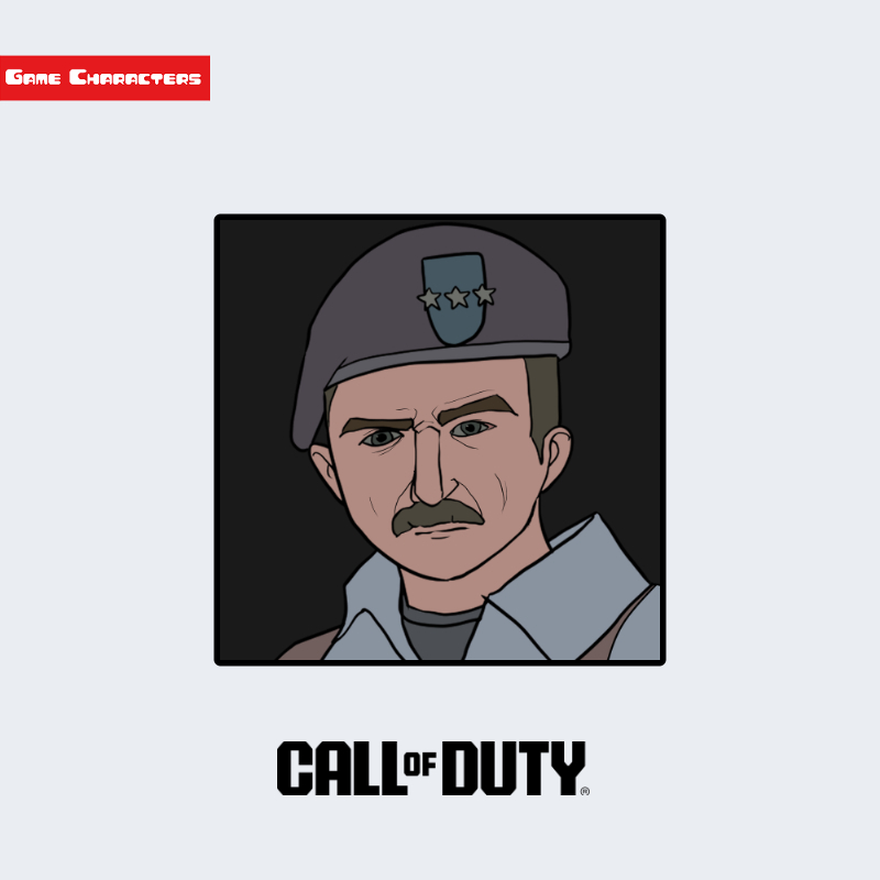 『コール オブ デューティ』に登場するシェパード将軍は、短い灰色の髪と整えられた口ひげを持つ男性キャラクターである。頭には軍帽を着用し、帽章として星形の徽章が確認できる。上半身には明るい青灰色の軍服を着用し、襟元には高階級者に見られる装飾的な縫製が施されている。全体的に軍指揮官としての権威性を示す構造設計であり、他の戦闘兵士とは明確に階級差を示す装備体系を持つ。構造的には「指揮官軍服型」に分類される。