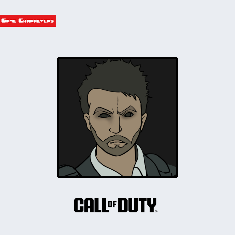 『コール オブ デューティ』に登場するウラジミール・R・マカロフは、短く逆立った黒髪と濃い髭を持つ男性キャラクターである。眉が鋭く、眼光が強調された造形で、表情全体が緊張感を帯びている。上半身は暗色の服装で構成され、襟元は白シャツがのぞく形式的な装いとなっている。戦闘用装備ではなく、指揮官的立場を示すスマートな衣装構造が特徴である。構造的には「指揮官服融合型」に分類される。