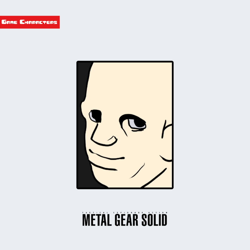 『メタルギア』シリーズに登場するヨハン・ヤコブセンは、頭髪のない人間型キャラクターで、明るい肌色と滑らかな輪郭をもつ顔立ちが特徴である。目は黒く塗りつぶされたようなデザインで、視線が横方向に流れる構図となっている。鼻から口にかけてのラインは強調され、頬の膨らみが印象的な立体構造を形成している。全体として「人間型」かつ「簡略化写実構造」に分類され、極端に省略された描線によって、他キャラクターとの差異を際立たせている。