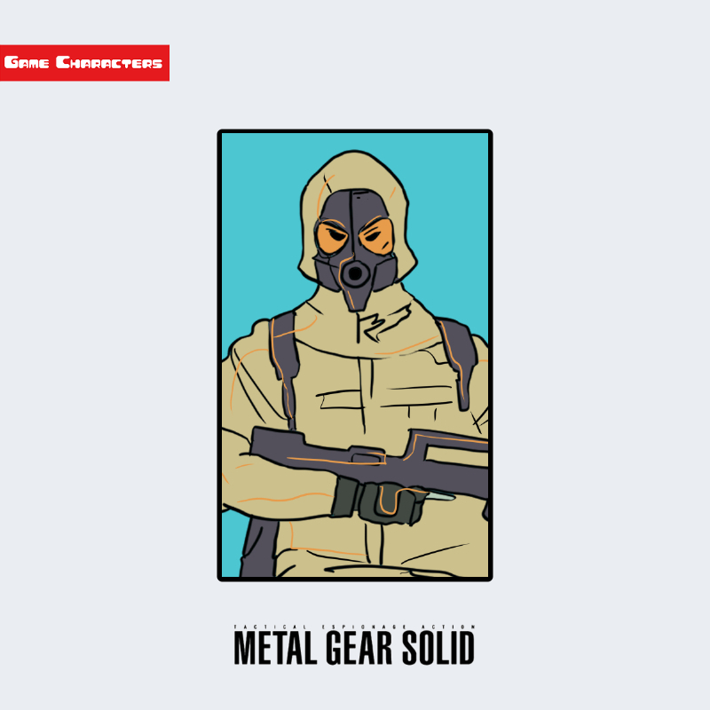 『メタルギア』シリーズに登場するNBC Warfare Troopは、防護服を全身に装備した兵士型キャラクターである。頭部から胴体までを覆うフード付きスーツを着用し、顔全体をガスマスクで保護している。目の部分にはオレンジ色のゴーグルが組み込まれ、外気との遮断構造を持つ。手には黒い防護手袋を装着し、胸部から腰にかけてベルトと装備ストラップが確認できる。全体として「人間型」かつ「防護装備融合構造」に分類される。