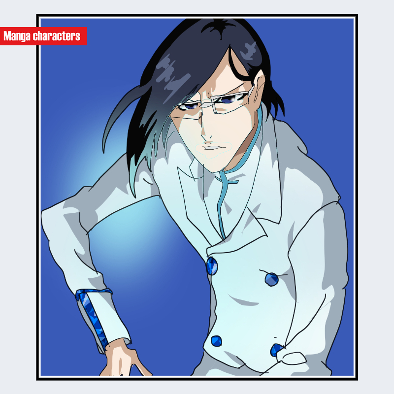 『BLEACH』に登場する石田雨竜は、長めの黒髪を右側へ大きく流し、左側へ細い毛束を落とす「左右非対称レイヤー型」の髪構造を持つ。髪は直線的で、額から側頭部にかけて斜めのラインを形成し、眼鏡のフレームと重なることで頭部の輪郭が明確に区切られている。衣装は白を基調とした上衣で、胸元から腹部にかけて縦に二つのボタンを配置した「直線強調型」の構造が特徴。袖には青系のアクセントが入り、白衣装との対比で視覚階層を段階化している。
