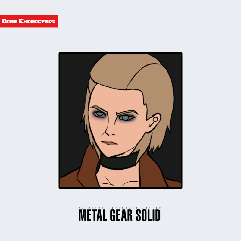 『メタルギア』シリーズに登場するEVAは、金髪を肩まで伸ばした人間型キャラクターである。髪は緩やかなウェーブを描き、前髪は片側に流すように整えられている。衣装はブラウン系のジャケットと、胸元を大きく開いた黒いインナーで構成され、腰にはベルトと装備ホルダーを備えている。全体として機能性と大胆さを併せ持つ装束構成をとっており、「人間型」かつ「戦闘服融合構造」に分類される。