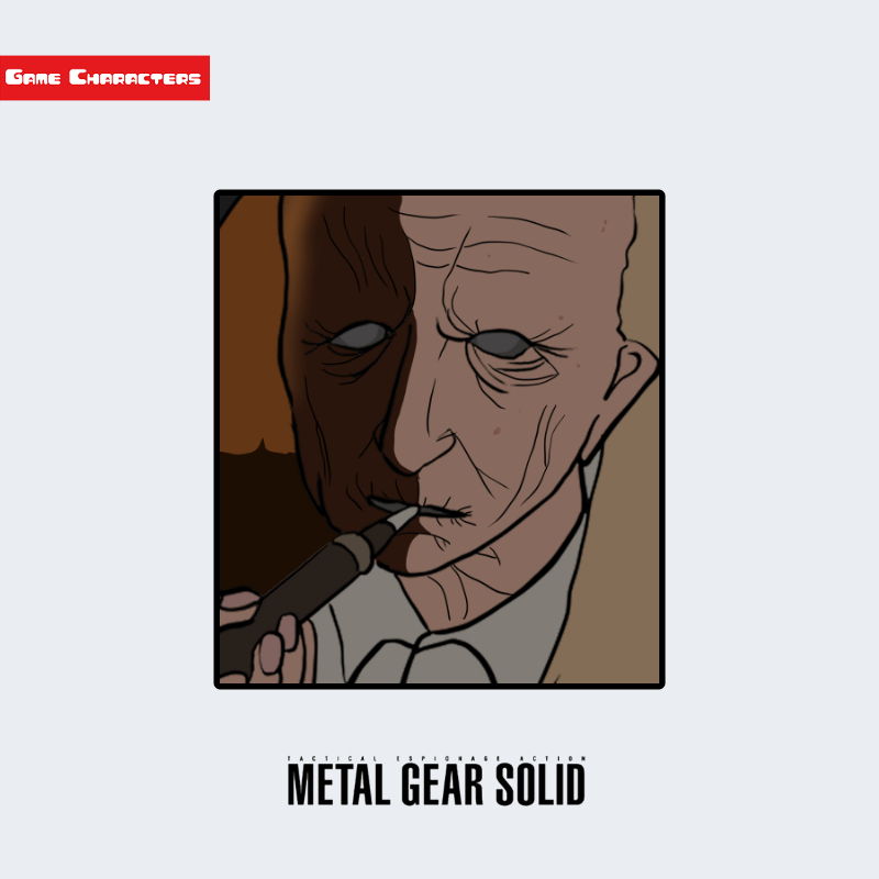 『メタルギア』シリーズに登場するコードトーカーは、高齢の男性キャラクターであり、深い皺と特徴的な顔立ちが印象的である。灰褐色の肌に加え、白髪を後方に撫でつけた髪型を持ち、視覚的に年齢と知恵を象徴する造形となっている。手には葉巻を持ち、口元にかけて描かれる仕草が象徴的で、知識人または思想家を想起させる衣装構成である。服装は落ち着いた色調のシャツとスーツ風の外套を基調とし、「人間型」かつ「長老構造」に分類される。