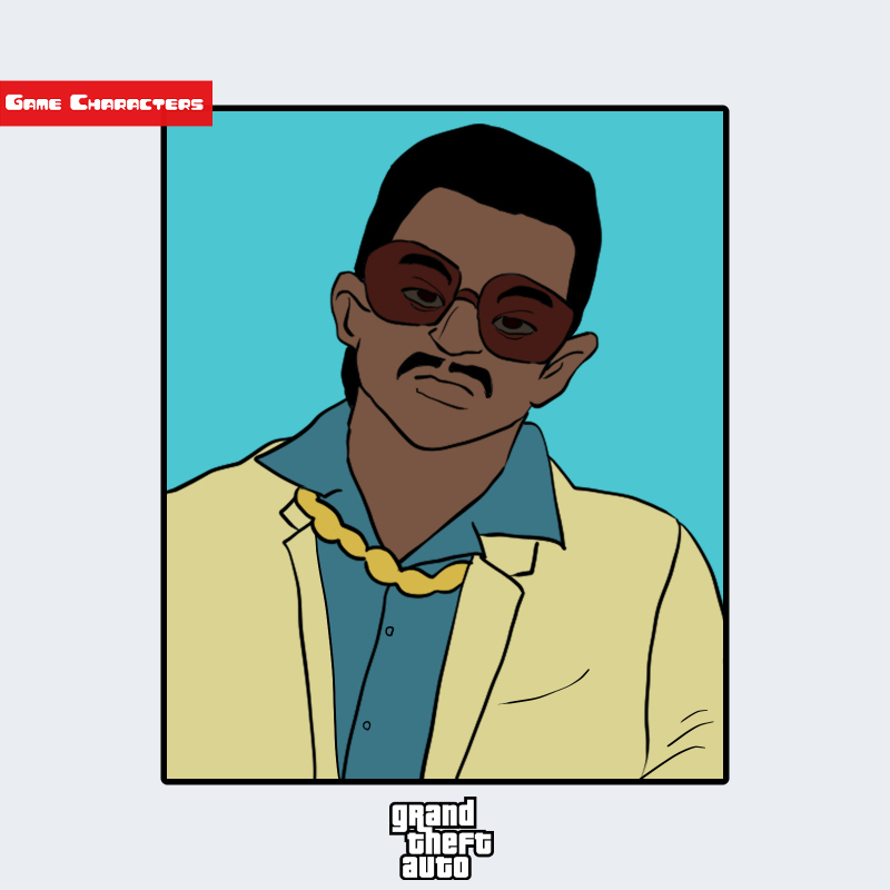 『グランド・セフト・オート』シリーズに登場するランス・ヴァンスは、短髪と口ひげを持つ男性キャラクターである。画像では薄黄色のスーツジャケットに青いシャツを合わせ、首元には金色のチェーンネックレスを着用している。大きめのサングラスが特徴的で、全体として「ビジネス装飾型」に分類される。トミー・ベルセッティの花柄シャツ構造に比べ、より都市的かつ装飾性の強い構成が見られる。