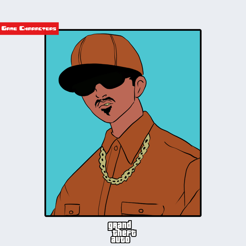 『グランド・セフト・オート』シリーズに登場するオージー・ロックは、茶色のシャツと金のネックレスを身につけた男性キャラクターである。画像では茶系のキャップとサングラスを着用し、全体的にストリートファッション要素が強い。衣装はゆったりとした構成で、視覚的には「アーバンストリート型」に分類される。ランス・ヴァンスのビジネス装飾型と対比すると、より地域的・文化的個性を反映した造形となっている。