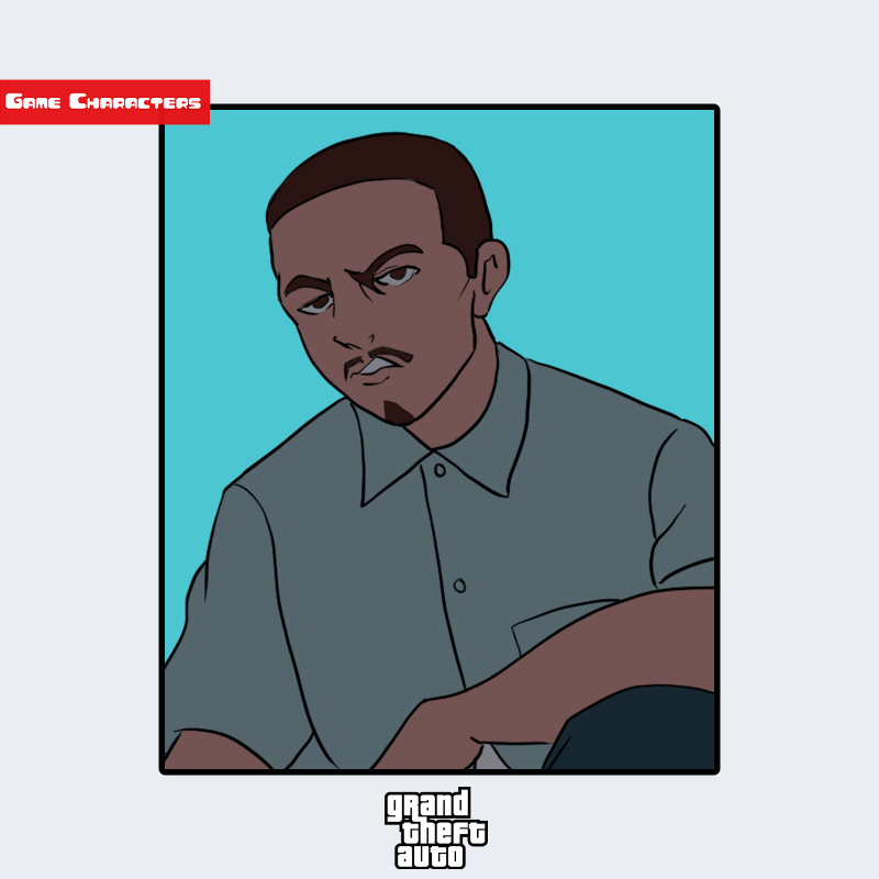 『グランド・セフト・オート』シリーズに登場するカール・ジョンソンは、短髪と引き締まった輪郭を持つ男性キャラクターである。画像では灰色のシャツを着用しており、ボタンを上まで留めた整った衣装構成が確認できる。全体的な装いは実用性を重視した「カジュアル実務型」に分類される。オージー・ロックやランス・ヴァンスのような装飾性の高い構造とは対照的で、機能的かつ堅実なデザインを基調としている。