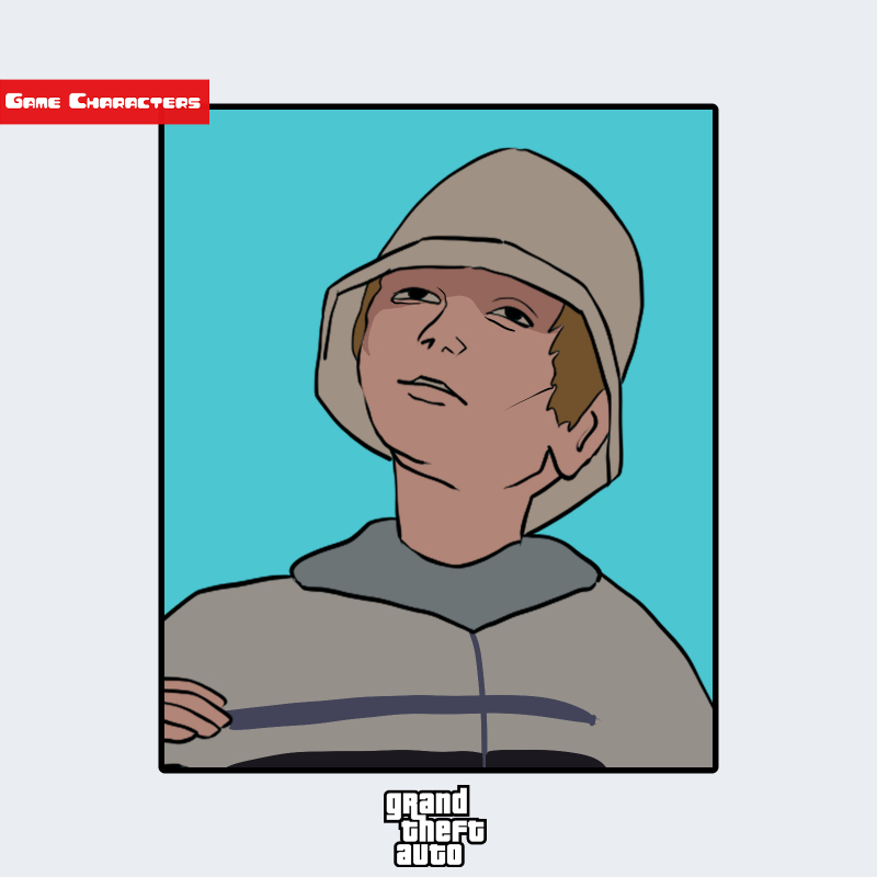 『グランド・セフト・オート』シリーズに登場するマッカーは、金髪の短髪と薄い眉を持つ若い男性キャラクターである。画像ではベージュ系のフード付き衣装を着用し、フードを頭にかぶっている。衣装構造は防寒や隠蔽性を意識した形状で、全体として「軽装防護型」に分類される。トゥルースのカジュアル装飾型と比較すると、より単色で機能重視の造形を備えている。