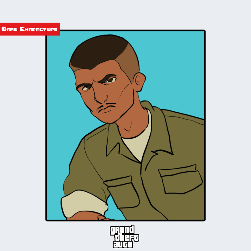 『グランド・セフト・オート』シリーズに登場するジェリー・マルチネスは、短く刈り上げた髪型と鋭い眉を持つ男性キャラクターである。画像ではオリーブグリーンの軍装風シャツを着用し、胸元のポケット構造が強調されている。全体として「ミリタリー融合型」に分類され、実用性を重視した衣装設計が特徴。トミー・ベルセッティなどのフォーマル型キャラクターと比べると、より戦闘的かつ現場志向のデザイン構成となっている。