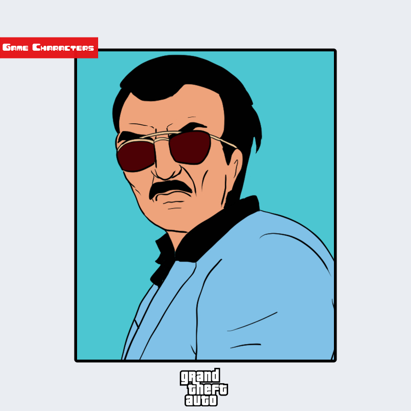 『グランド・セフト・オート』シリーズに登場するディエゴ・メンデスは、短髪に口髭をたくわえ、濃い色のサングラスをかけた中年男性として描かれている。上半身は水色のシャツと黒い襟の組み合わせで、シンプルながらも権威的な印象を与える服装構成となっている。全体的に落ち着いた色調でまとめられ、構造的には「現実的人型構造」に分類される。姿勢や表情には余裕と支配性が感じられ、同シリーズの他の登場人物と比べても支配階層を象徴するデザインである。