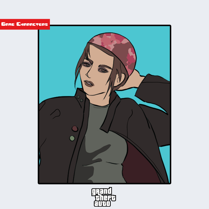 『グランド・セフト・オート』シリーズに登場するアシュリー・バトラーは、茶色の髪を後方でまとめ、赤みを帯びたバンダナを巻いた女性キャラクターである。上半身は黒いジャケットの下にグレーのトップスを重ねた構成で、全体的に落ち着いた色調でまとめられている。片手を頭の後ろに回した姿勢が特徴的で、衣装構成は機能性重視の「カジュアル人型構造」に分類される。同シリーズに登場するルイーズ・キャシディと比較すると、より無骨なストリート寄りの造形である。