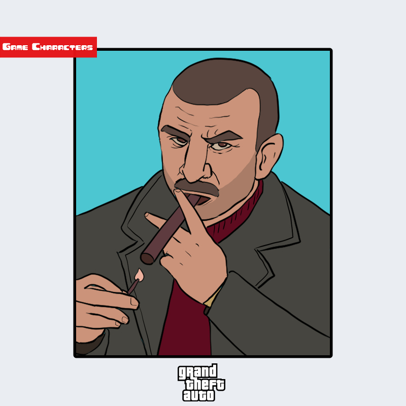 『グランド・セフト・オート』シリーズに登場するレイ・ブルガーリンは、短髪で口ひげを蓄えた中年男性のキャラクターである。画像では、黒のコートを羽織り、内側には赤のシャツを着用している。片手には葉巻を持ち、もう一方の手で口元へ近づける仕草が確認できる。この動作と造形は、権威性を演出する記号的構造として設計されている。全体として「クラシックリアリズム構造」に分類され、同シリーズ内の都市社会的造形群に属する。