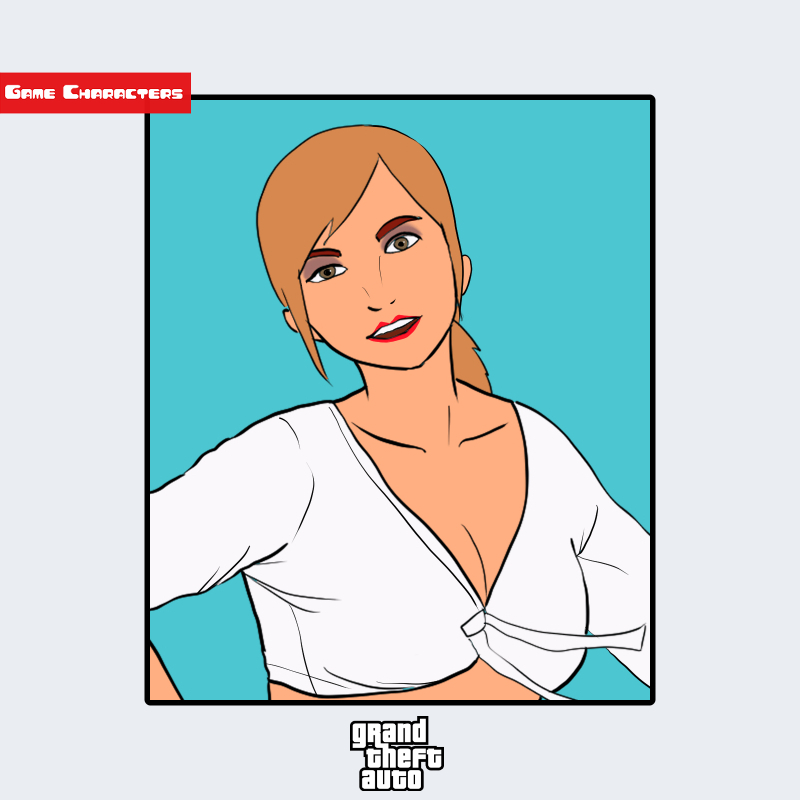 『グランド・セフト・オート』シリーズに登場するトーニャ・ウィギンスは、短く整えられた赤毛と大ぶりのフープピアスを特徴とする女性キャラクターである。画像では、薄い緑色のノースリーブシャツを着用し、ボタンを開けたラフなスタイルが確認できる。肩のラインが強調される衣装構造となっており、全体として実在感を重視した人物造形が取られている。造形分類としては「アーバンリアリズム構造」に属する。