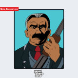 『グランド・セフト・オート』シリーズに登場するエル・ルビオは、金髪にバンダナを巻き、丸いサングラスをかけた男性キャラクターである。画像では、黒いシャツの上に開いた襟元が見え、胸元のネックレスがアクセントになっている。さらに、つばの広い黒いハットを着用しており、全体の構成はリゾートとアンダーグラウンドを融合させた造形バランスとなっている。これらの特徴から「ラテンラグジュアリー構造」に分類される。