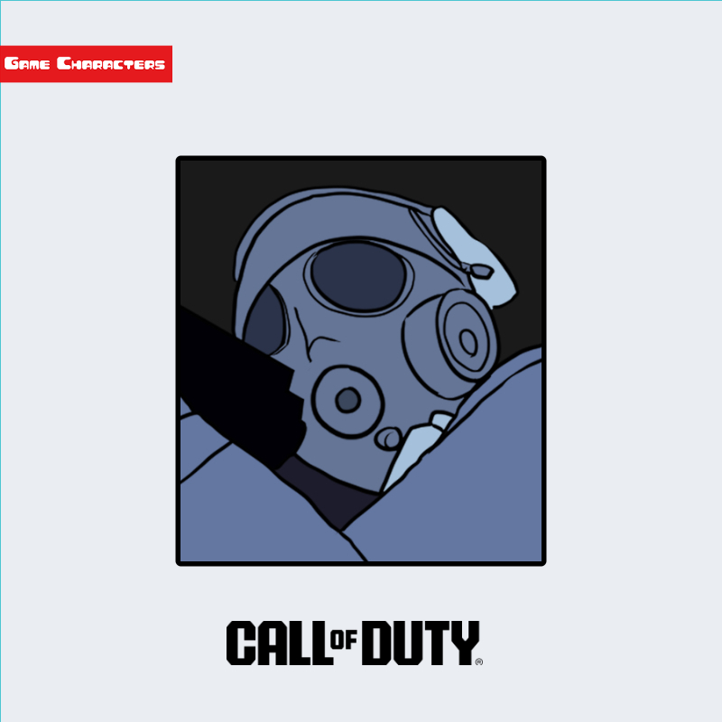 『コール オブ デューティ』シリーズに登場するマーカス・バーンズは、防護マスクを装着した兵士型のキャラクターとして描かれている。視認情報では、円形のフィルターを持つガスマスクとヘルメットを併用した装備が特徴で、全体的に暗色の戦闘服で統一されている。顔の大部分がマスクで覆われ、視覚的には「防護装備一体化型」の構造を持つ。装甲や防護具の重心が頭部に集中しており、シリーズ内の他兵士よりも防御重視の印象を与える造形である。