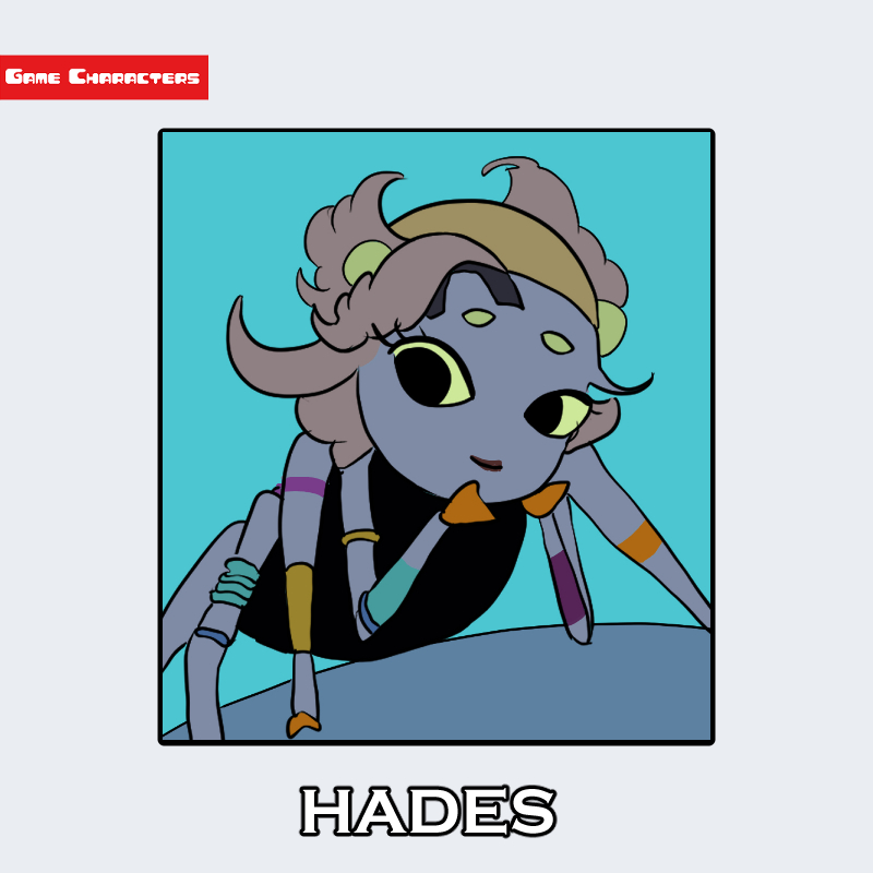 『HADES』に登場するアラクネは、蜘蛛をモチーフとした擬人化キャラクターである。上半身は人間的な構造を保ちながらも、複数の腕や節のある肢体を備え、脚部装飾に鮮やかな色彩を取り入れている。髪は柔らかく束ねられ、頭部にはバンド状の装飾が付く。全体的に軽快で曲線的な造形を持ち、「擬昆虫型構造」と分類される。他の神格キャラクター(例:アテナ、アポロン)と比較すると、より遊動的・有機的なフォルムを特徴とする。
