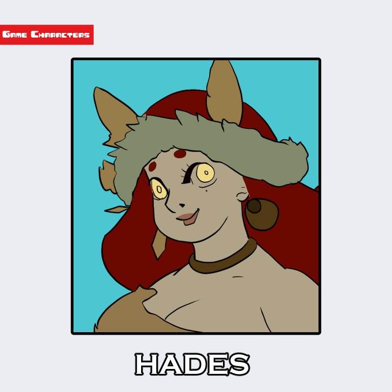 『HADES』に登場するキルケーは、獣耳を持つ人物型キャラクターである。赤みがかった長い髪を背中に流し、頭には毛皮のような質感の緑色ヘッドバンドを巻いている。目は黄金色で瞳孔が細く、頬には赤い斑点状の模様がある。全体的に人間と動物の特徴を併せ持つ「擬獣化構造」に分類され、自然や変化を象徴するデザイン要素が組み込まれている。他キャラと比較すると、有機的な造形が際立つ構造となっている。