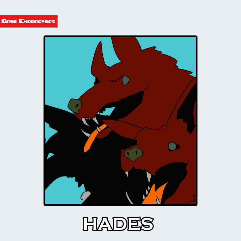 『HADES』に登場するケルベロスは、三つの頭部を持つ大型獣型キャラクターである。頭部のそれぞれが異なる角度を向き、牙をむき出しにした姿勢をとっている。全体の配色は深い赤と黒を基調とし、力強さと対称構成を併せ持つ。体毛やシルエットの描写は単一生物としての統一性を保ちながらも、多頭構造を際立たせる設計で、「多頭獣構造」に分類される。冥界の番犬としての象徴性を、構造的な重層デザインで表現している。