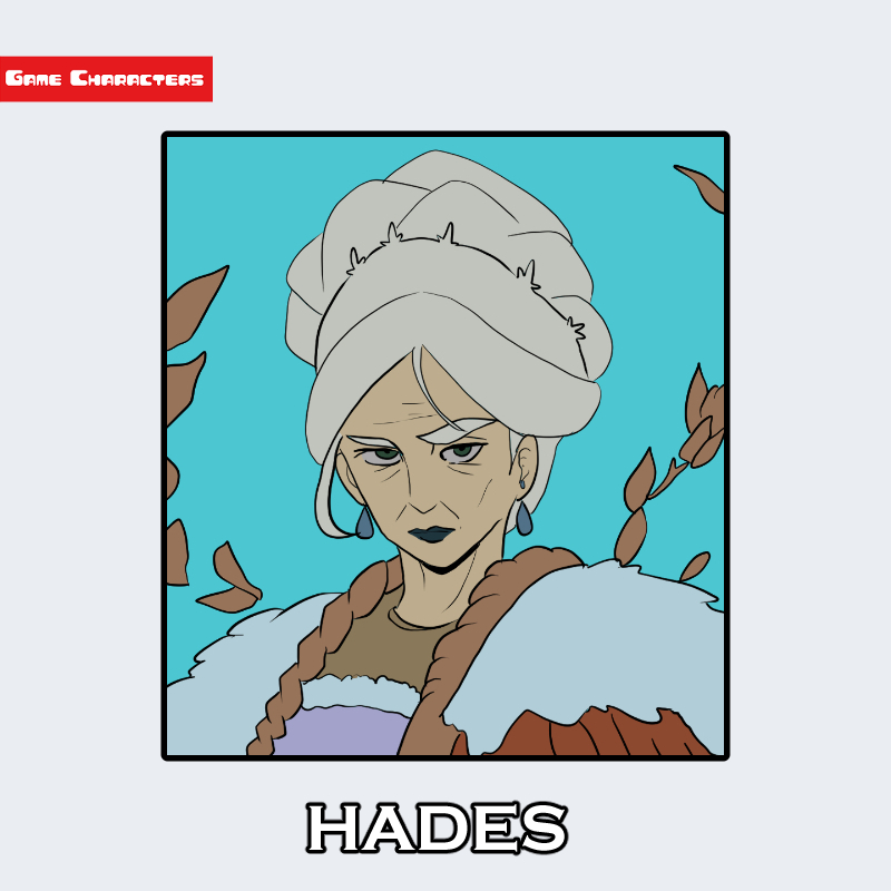 『HADES』に登場するデメテルは、白髪をまとめた髪型と落ち着いた色調の衣装を身にまとう女性型キャラクターである。頭部には厚みのあるターバン状の冠をかぶり、肩には毛皮を思わせる装飾が施されている。衣服全体は寒色系で統一され、背後には茶色の葉のような意匠が漂う。全体として「自然象徴構造」に分類され、他の神格キャラクター(例:アフロディーテやアルテミス)と比較すると、静的で大地的な造形バランスが取られている。