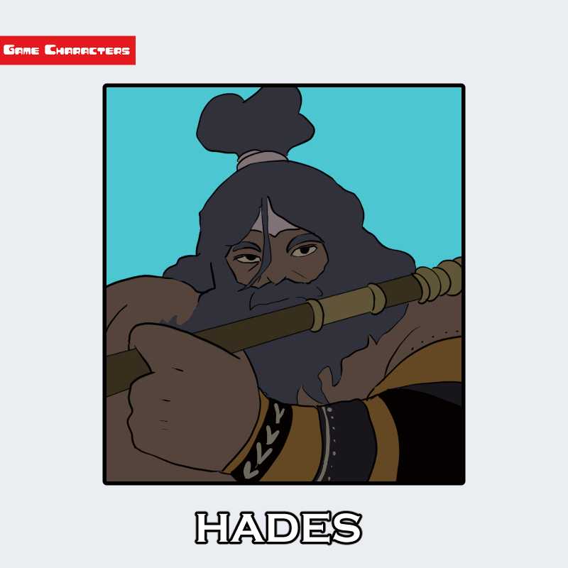 『HADES』に登場するヘファイストスは、たくましい体格と濃い髭を持つ人物型キャラクターである。頭部には黒髪を後ろで束ねた髷があり、手には金属製の槌を象徴するような長柄の武具を握っている。肩から腕にかけては金属装飾を組み込んだ衣装が見られ、鍛冶神らしい重厚な構造を持つ。全体として「鍛造神格構造」に分類され、同作のゼウスやアレスと比べて実務的かつ素材的な象徴を強く備えた造形が特徴である。