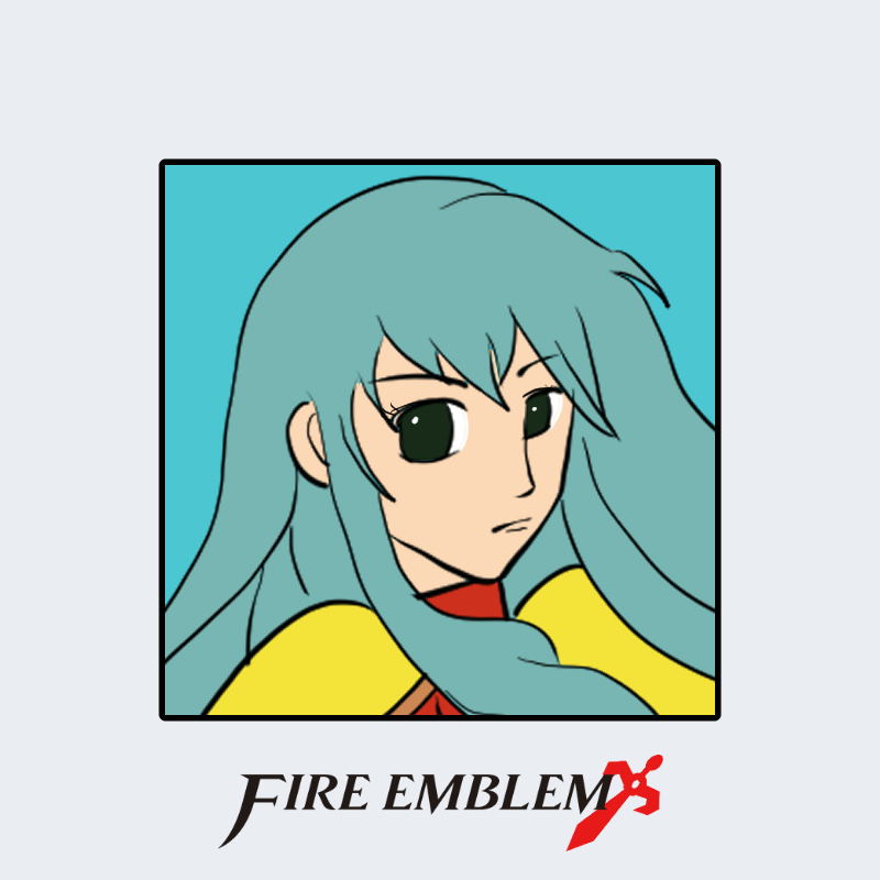 『ファイアーエムブレム』に登場するエイリークは、長い青緑色の髪を特徴とするキャラクターである。髪は肩よりも長く流れ、前髪は自然に分かれて頬にかかる形状をしている。衣装は赤い襟元と黄色い外装が確認でき、軽装布型の構造を持つ。肩口のデザインが広がることで上半身のシルエットに柔らかさを与えており、全体的に「布装束融合型」として分類できる。同シリーズ内の男性騎士系キャラクターと比較すると、金属要素を抑えた衣装構造が明確な対比を形成している。