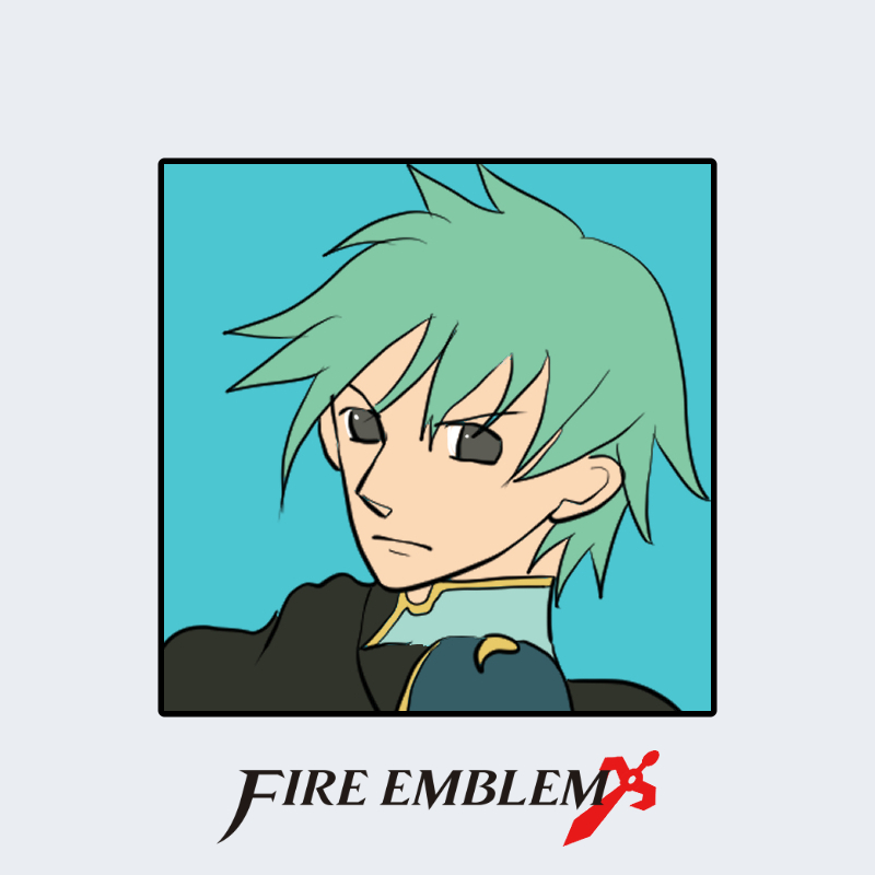 『ファイアーエムブレム』に登場するエフラムは、青緑色の髪と青系の衣装を特徴とするキャラクターである。髪はやや長めで前方に流れる形状をとり、額の上で分かれた前髪が鋭い印象を与える。衣装は金縁の装飾を持つ肩当てと襟を備えた軽鎧型であり、「軽装鎧融合型」に分類される。肩部の装飾が高貴さを示しつつも、実用性を兼ね備えた戦闘衣の構造を形成している。姉であるエイリークと対を成す色彩構造を持ち、同一世界観内でのデザイン階層が明確である。