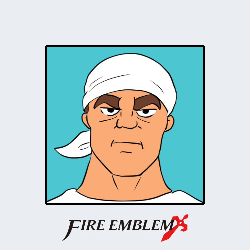 『ファイアーエムブレム』に登場するダロスは、頭に白い布を巻いた大柄な男性キャラクターである。髪は布の下に隠れており、頭部を覆うターバン状の構造が確認できる。上半身は露出しており、衣装は肩から下にかけての軽装構造を持つ。「船乗り型」に分類され、海上活動を想定した動きやすい設計が見られる。体格は筋肉質で、同シリーズに登場する戦士系キャラクターの基準よりも堅牢な構造を示している。
