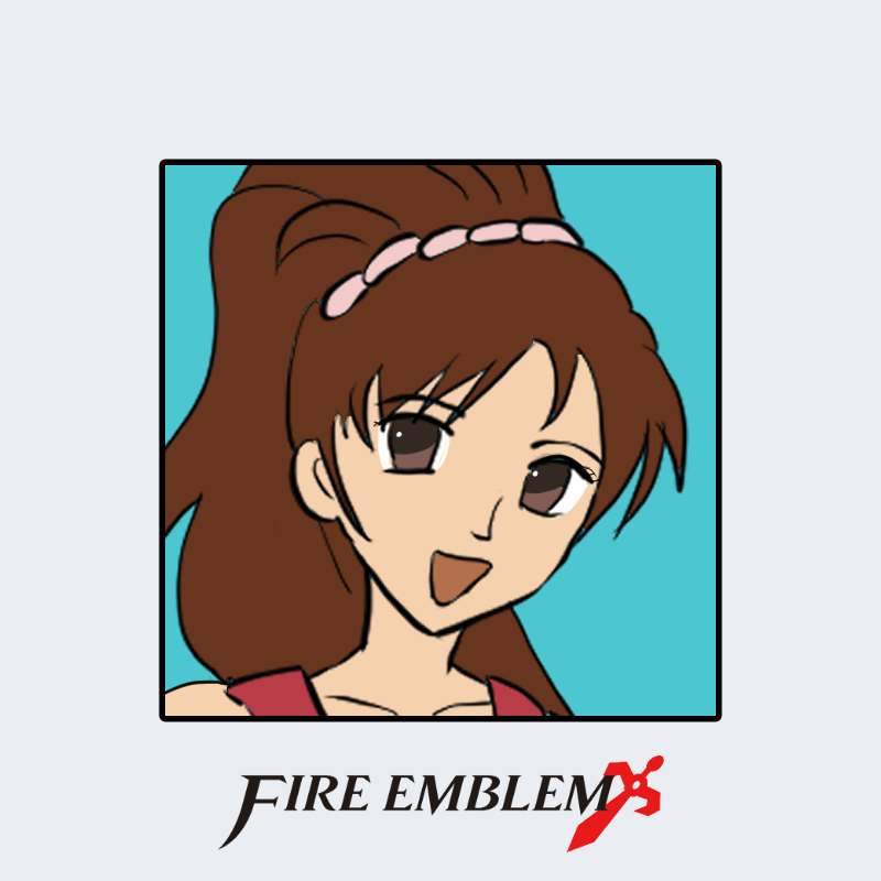『ファイアーエムブレム』シリーズに登場するリンダは、茶色の長髪を高い位置で束ねたポニーテールが特徴的な女性キャラクターである。髪は後方へまとめられつつも自然な広がりを持ち、前髪はやや短く、額の形を際立たせる構造になっている。頭部には白い装飾バンドが巻かれ、動きのある軽装衣装と調和している。全体として動作性を重視した造形であり、「軽装魔導型」に分類される。