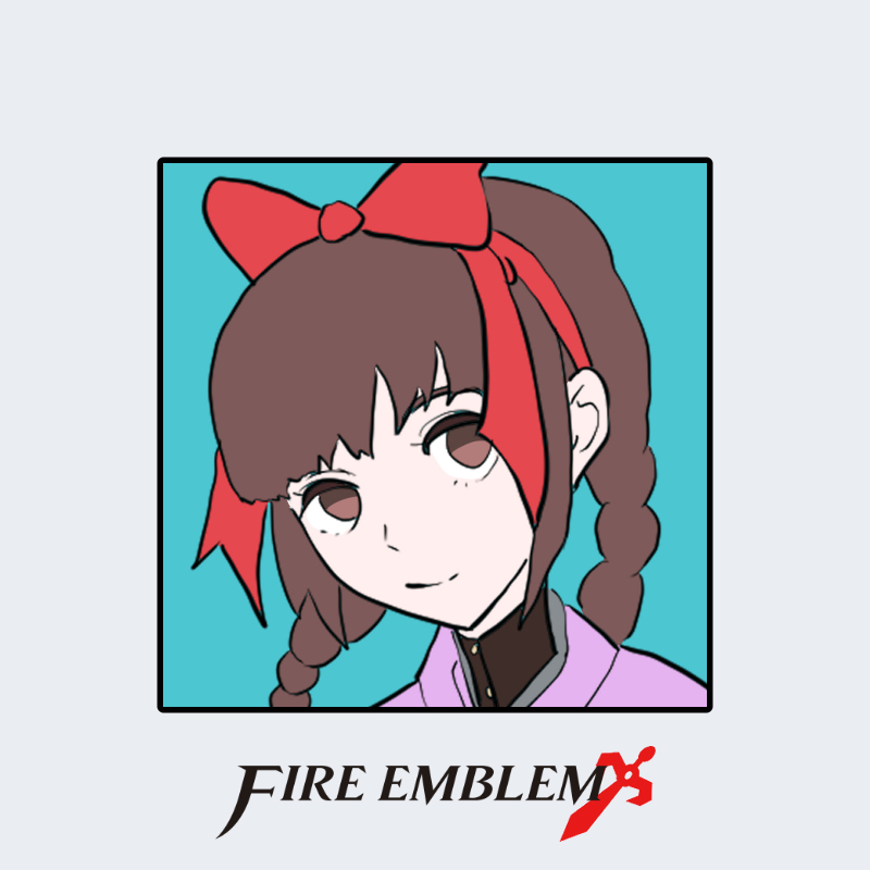 『ファイアーエムブレム』シリーズに登場する源まもりは、茶色の髪を左右で三つ編みにまとめた女性キャラクターである。頭頂部には大きな赤いリボンが結ばれ、髪型全体のアクセントとなっている。衣装は淡い紫系の上着を基調とし、襟元に黒いインナーが見える構成。全体としてアイドル衣装的な要素と日常服構造が融合しており、「舞台融合型」に分類される。