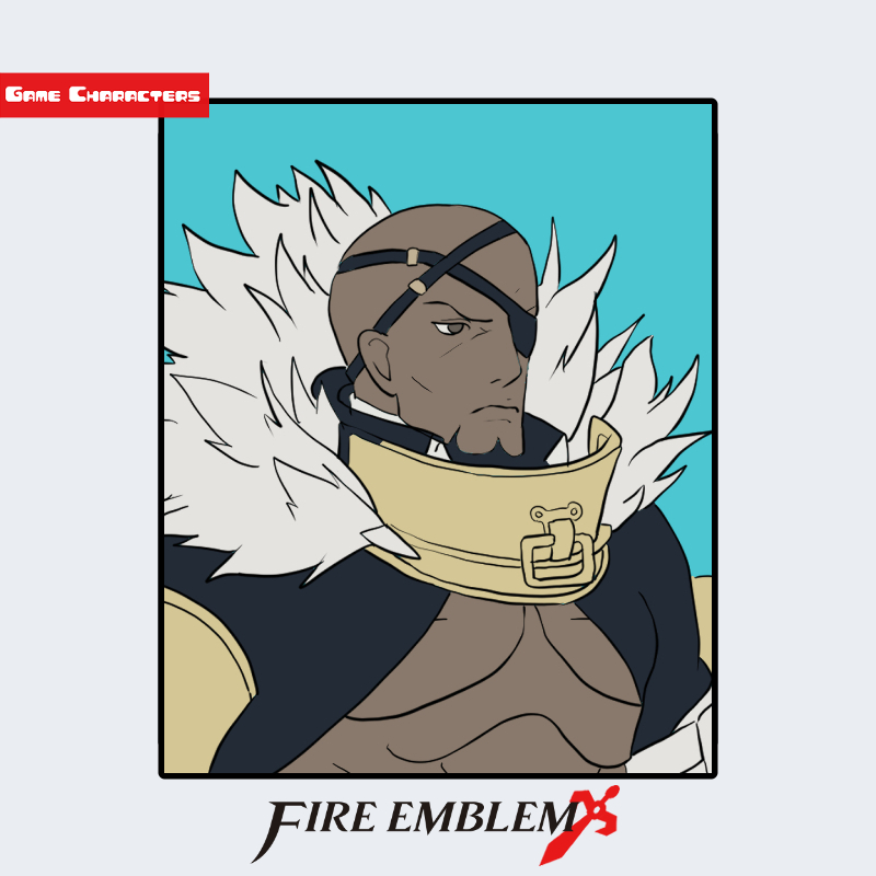 『ファイアーエムブレム 覚醒』に登場するバジーリオは、剃り上げた頭部と太い首元を持つ屈強な体格の男性キャラクターである。顔には眼帯を装着し、戦歴を感じさせる傷跡が確認できる。衣装は黒を基調とした重厚な布地の上に、白い毛皮をあしらった襟飾りと大型の留め具を備えた構造で、威厳と防寒性を兼ね備えたデザインとなっている。全体構造は「戦闘指揮官型」に分類され、同作の重装鎧系キャラクターとは異なり、指揮者としての象徴性を重視した装束配置が特徴である。