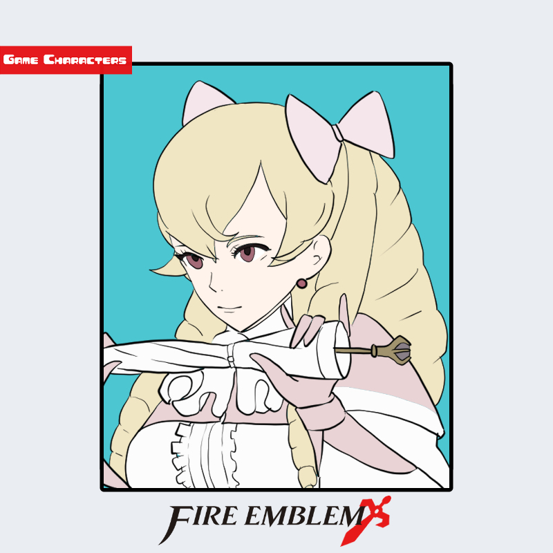 『ファイアーエムブレム 覚醒』に登場するマリアベルは、金髪を高く結い上げ、左右に大きく巻いたツインカールが特徴的な女性キャラクターである。衣装は白を基調とし、袖や襟元にフリルがあしらわれた貴族風のデザインで、淡いピンクの装飾が全体の統一感を保っている。胸元から腰にかけてはレース調の布地が重ねられ、上品さと動きやすさを両立した造形を見せる。全体構造は「礼装貴族型」に分類され、同作に登場するエメリナなどの聖職的衣装とは異なり、社交的要素を前面に出した構造である。