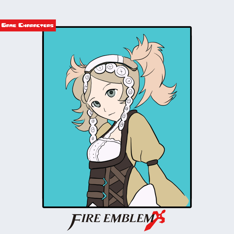 『ファイアーエムブレム 覚醒』に登場するリズは、金髪を高めの位置で結い上げ、左右に大きくカールした髪束を垂らした女性キャラクターである。頭部には白い装飾布をあしらったレース状のヘッドバンドを着用し、全体に柔らかな印象を与える衣装構成となっている。服装は淡い生成り色を基調とし、袖や胸元にフリルが施された聖職系の衣装で、機能性よりも清潔感と儀礼性を重視した造形である。全体構造は「聖職衣融合型」に分類され、同作のミリエルやマリアベルの礼装構造と比較すると、より簡素で実務的な設計が見られる。