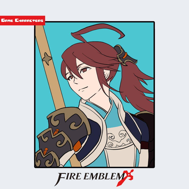 『ファイアーエムブレムif』に登場するツバキは、赤みを帯びた長髪を後方で高く束ね、額から頬にかけて髪を流す男性キャラクターである。衣装は白と青を基調とした和風の騎士装束で、肩部に装飾的な盾型の防具パーツが確認できる。胸部は布と金属の複合構造で、機動性を重視した軽鎧仕様となっている。全体として「飛行騎士型」または「軽装騎士構造」に分類され、同作に登場するヒノカと同系統の飛行戦装備を持つデザインである。