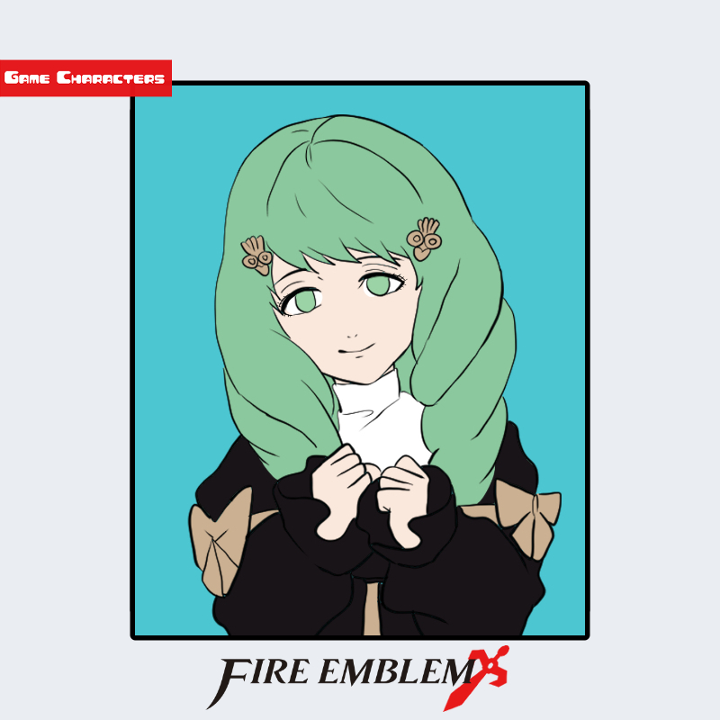 『ファイアーエムブレム 風花雪月』に登場するフレンは、淡い緑色の長髪を持つ少女キャラクターである。髪は前髪を揃え、両側に花飾りをつけており、全体はやわらかく波打つ構造を持つ。衣装は黒と白を基調とし、肩や胸部に金の装飾を施した宗教的意匠が見られる。「儀礼装束融合型構造」に分類され、修道服的要素と装飾的デザインが統合された造形である。同作に登場するセテスと共通する装飾パターンが見られ、視覚的に同系統のデザイン体系に属している。