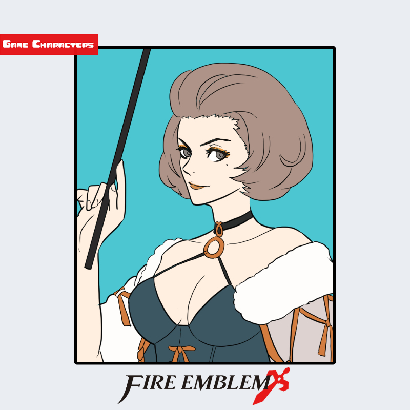 『ファイアーエムブレム 風花雪月』に登場するマヌエラは、短く整えたライトブラウンの髪と、肩を露出させた華やかな衣装を特徴とする女性キャラクターである。衣装は黒と白を基調に、胸元に金の装飾が施され、首元には円環状のチョーカーと宝石が配置されている。「舞踏儀礼融合型構造」に分類され、舞台衣装的な意匠と儀礼服要素を組み合わせたデザインとなっている。全体として、修道服系統の登場人物とは異なる社交的衣装構造を持つ点が特徴である。