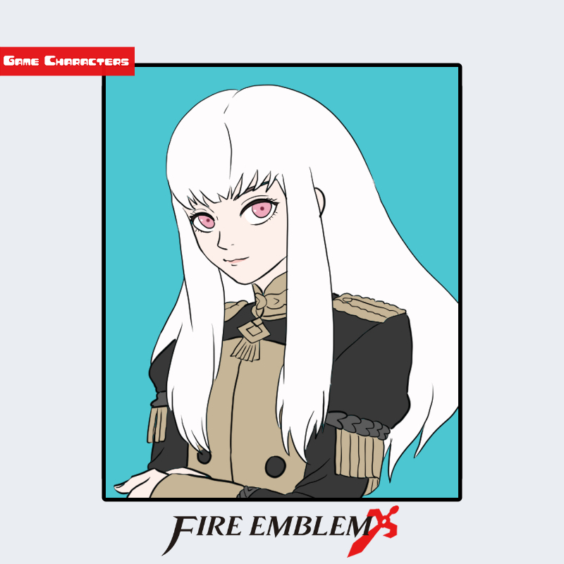 『ファイアーエムブレム 風花雪月』に登場するリシテア=フォン=コーデリアは、白銀に近い明るい髪を長く伸ばし、前髪を直線的に切り揃えた女性キャラクターである。衣装は黒と金を基調とした士官学校の制服で、肩章と襟元の装飾が規則的に配置されている。上半身は左右対称の構造を持ち、金刺繍の意匠が胸部から袖にかけて流線状に施されている点が特徴。「儀礼制服融合型構造」に分類され、学術的階層と貴族的格式を併せ持つデザイン設計である。