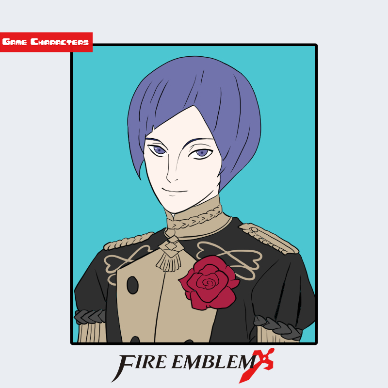 『ファイアーエムブレム 風花雪月』に登場するローレンツ=ヘルマン=グロスタールは、紫色の整った短髪と長い前髪を持ち、端正な印象を与える男性キャラクターである。衣装は黒と金を基調とした士官学校の制服で、胸元の赤いバラの装飾が特徴的。肩章や金刺繍が対称的に配置されており、「貴族軍装融合型構造」に分類される。全体的にフォーマルな意匠を持ちながらも、他学生の制服より装飾階層が一段上に設計されている点が特徴である。