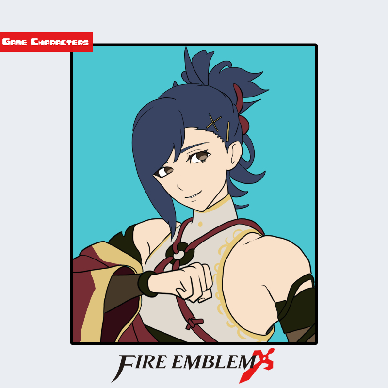 『ファイアーエムブレム エンゲージ』に登場するカゲツは、長い紺色の髪を後方で束ね、左側に金色の髪留めを付けた人物である。衣装は赤と白を基調とし、肩や胸部に和装要素を思わせる帯状の構造を持つ。袖口は非対称的に仕立てられ、軽装ながらも儀礼的意匠が施されている点が特徴的である。構造的には「軽装剣士型」に分類され、布と金具の融合が確認できる。同作内では西洋風の重装構造を持つキャラクターとの対比が際立つ造形である。