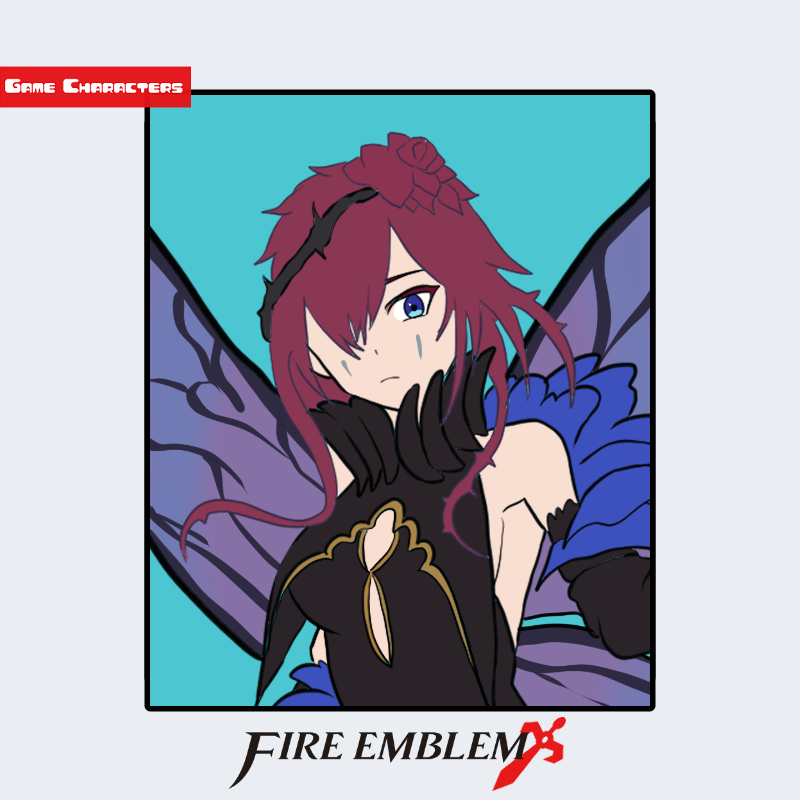 『ファイアーエムブレム ヒーローズ』に登場するスカビオサは、赤紫色の髪を持つ女性キャラクターである。髪は長く、前髪が左側に流れるようにセットされ、後部には羽のような装飾が確認できる。衣装は黒と青紫を基調とした軽装型で、胸部中央に金の装飾が施されている。背面には蝶の羽を思わせる半透明の構造があり、全体として「妖翼装飾構造」に分類される。同シリーズに登場するプルメリアなどと同系統の造形意匠を持つ。