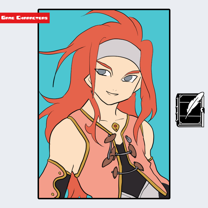『テイルズ オブ シンフォニア』に登場するゼロス・ワイルダーは、長い赤髪を後方へ流し、前方に垂らした束を残した特徴的なヘアスタイルを持つキャラクターである。頭部には白いバンダナを巻き、衣装はピンクとベージュを基調とした軽装構造で、胸元には革製のベルト留め具が確認できる。袖が無い上着と軽量な素材の組み合わせから、「冒険軽装型」の衣装構造に分類される。同作のクラトス・アウリオンの軍服融合型衣装と対照的に、自由度と個性を重視した造形となっている。