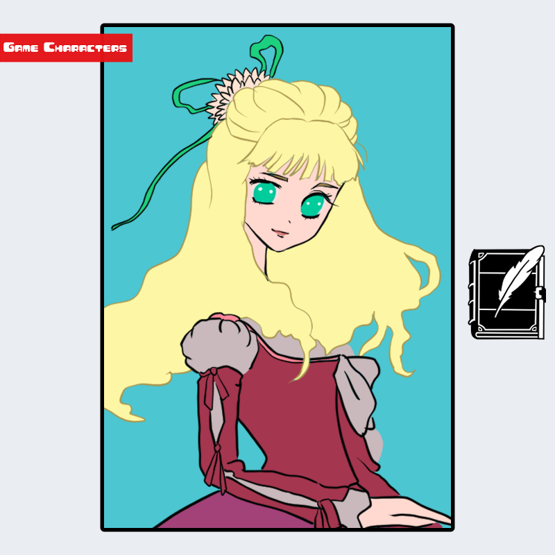 『テイルズ オブ リバース』に登場するクレア・ベネットは、長く柔らかい金髪を持つ女性キャラクターである。髪は大きく波打ちながら背中に流れ、前髪には緩やかなカールが施されている。衣装は深紅色を基調とし、肩部に灰色のパフスリーブを備えたクラシックなデザインで、胸元にはリボン状の装飾がある。全体として「クラシカル服飾型」に分類され、柔らかな布地構造と伝統的なラインが特徴的である。